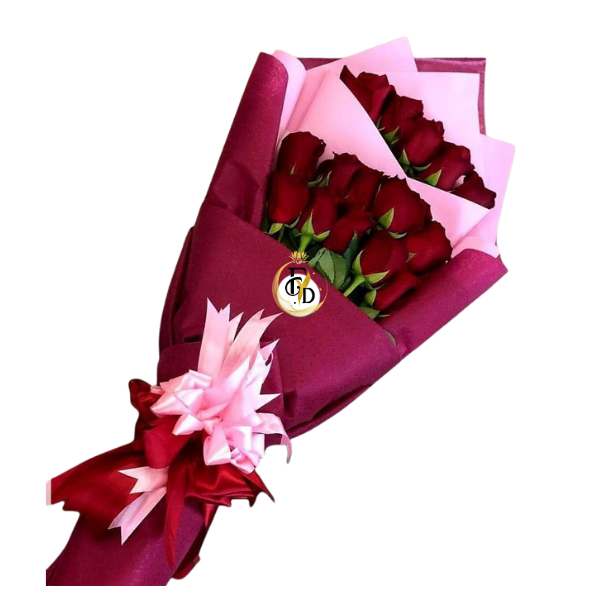 Hermoso Ramo con 15 rosas en escalas mas exclusiva envoltura de papel coreano y rosetón con cinta satinada.