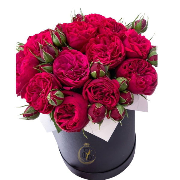 Elegante Box cilindro de 20 peonias rojas importadas mas lindo lazo con cinta de tela.