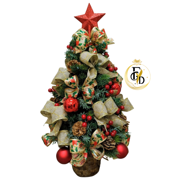 Espectacular pino navideño decorado con luces y adornos navideños. ( MEDIDAS 65CM POR 40 CM ) .